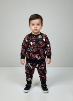 #KidsFashion #TwoPieceSet #BoysTracksuit #TrouserShirt #KidsStreetwear #ToddlerStyle #GraffitiPrint #UrbanKids #MatchingOutfits #KidsJoggerSet #WinterFashionKids
