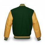 Dark green and golden varsity letterman baseball bomber jacket with wool body and leather sleeves | High quality baseball bomber jacket | Handmade varsity baseball bomber jacket | Premium varsity jacke