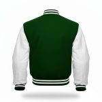 Dark green and white american letterman baseball bomber jacket with wool body and genuine leather sleeves | High quality baseball bomber jacket | Handmade varisty bomber jacket with leder sleeves | Premium varsity jacke