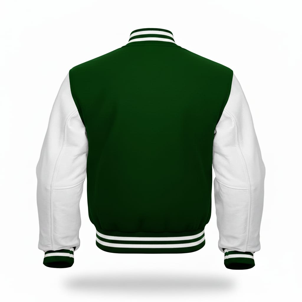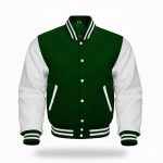 Home Apparel & Accessories Jackets American Letterman Jacket Dark green and white american letterman baseball bomber jacket with wool body and genuine leather sleeves | High quality baseball bomber jacket | Handmade varisty bomber jacket with leder sleeves | Premium varsity jacke
