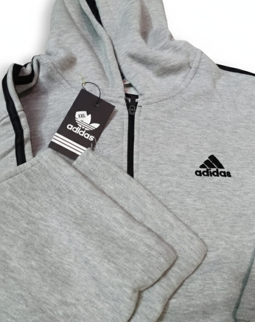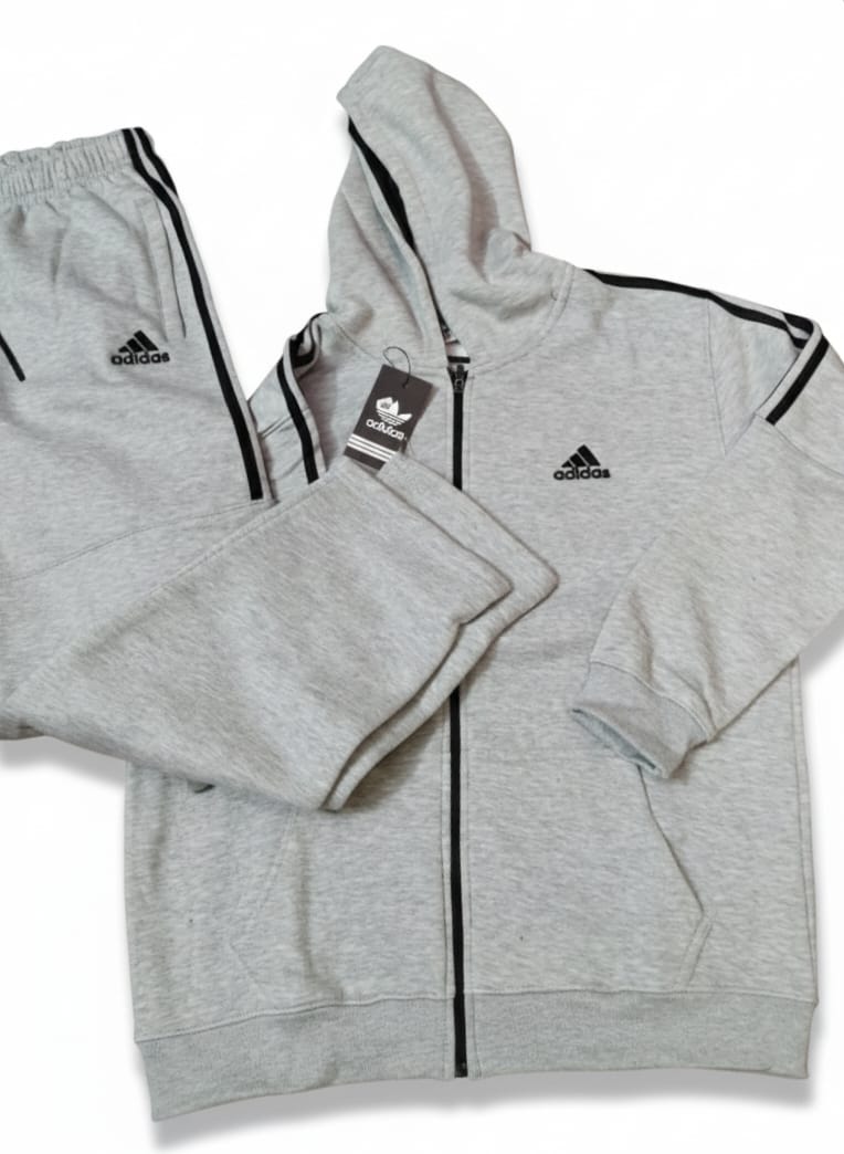 The zip-up hoodie features a clean, minimal design with secure stitching, while the elastic waist trousers with adjustable drawstring ensure a comfortable and flexible fit. Its versatile grey color makes it easy to pair with sneakers for a sporty and trendy look. Ideal for all seasons, this tracksuit combines comfort, durability, and everyday style.